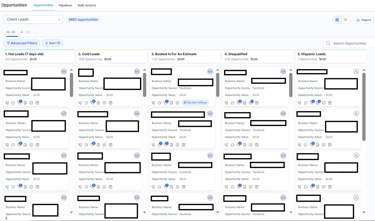 Leads are moved through stages like Hot, Cold, Booked, and Disqualified. This prevents missed follow-ups and makes your weekly workload predictable.