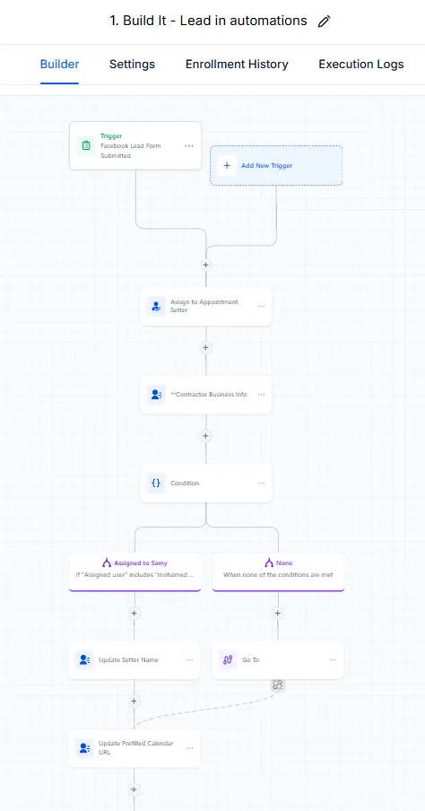 This workflow shows how leads are assigned, tagged, and routed automatically—so the right person handles the inquiry and nothing slips through.