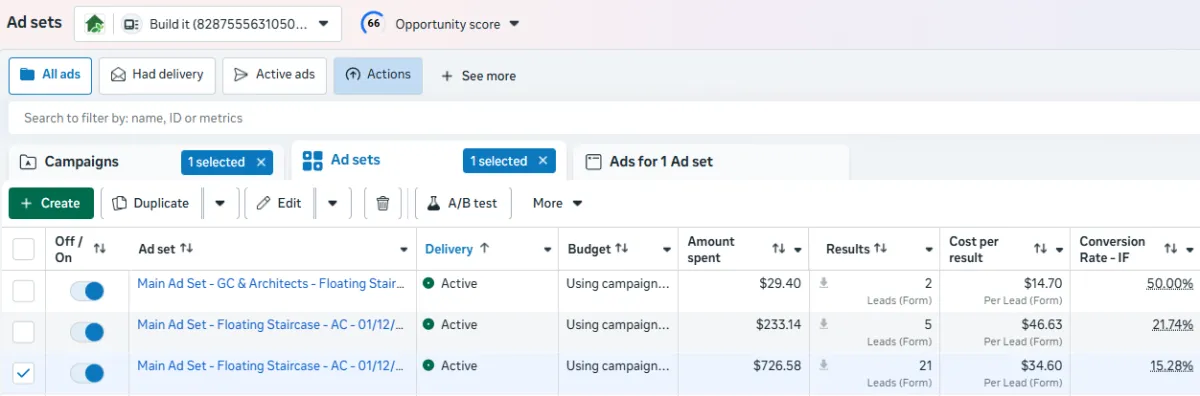This is the live ad campaign generating staircase inquiries. We track cost per lead and lead quality so you know exactly what your marketing is producing.