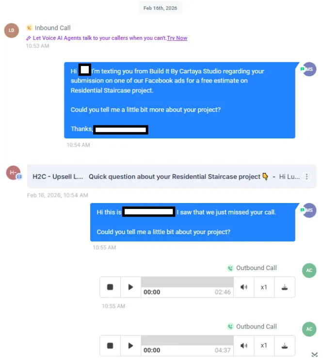 When a lead comes in, we respond fast and attempt contact right away (text + call). That’s how you win the job before competitors even reply.